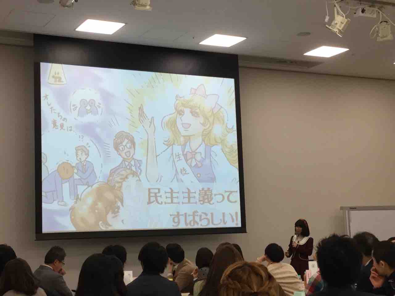 たかまつさんの運営する「笑下村塾」では、学校や選管とのコラボもした出張授業なども行なっているとのこと。